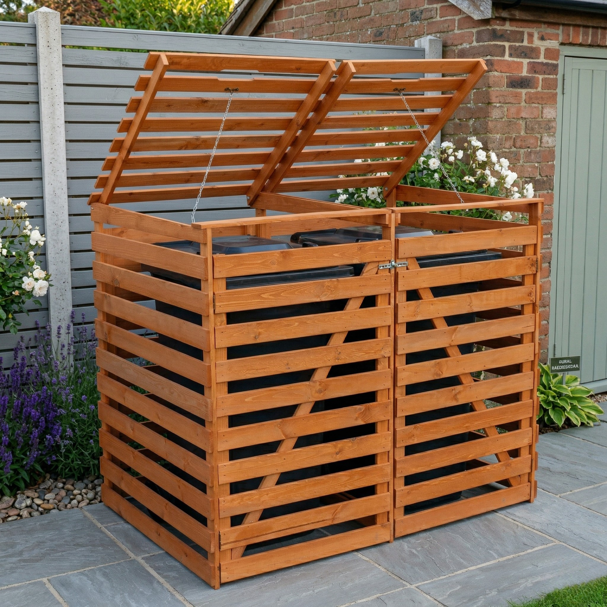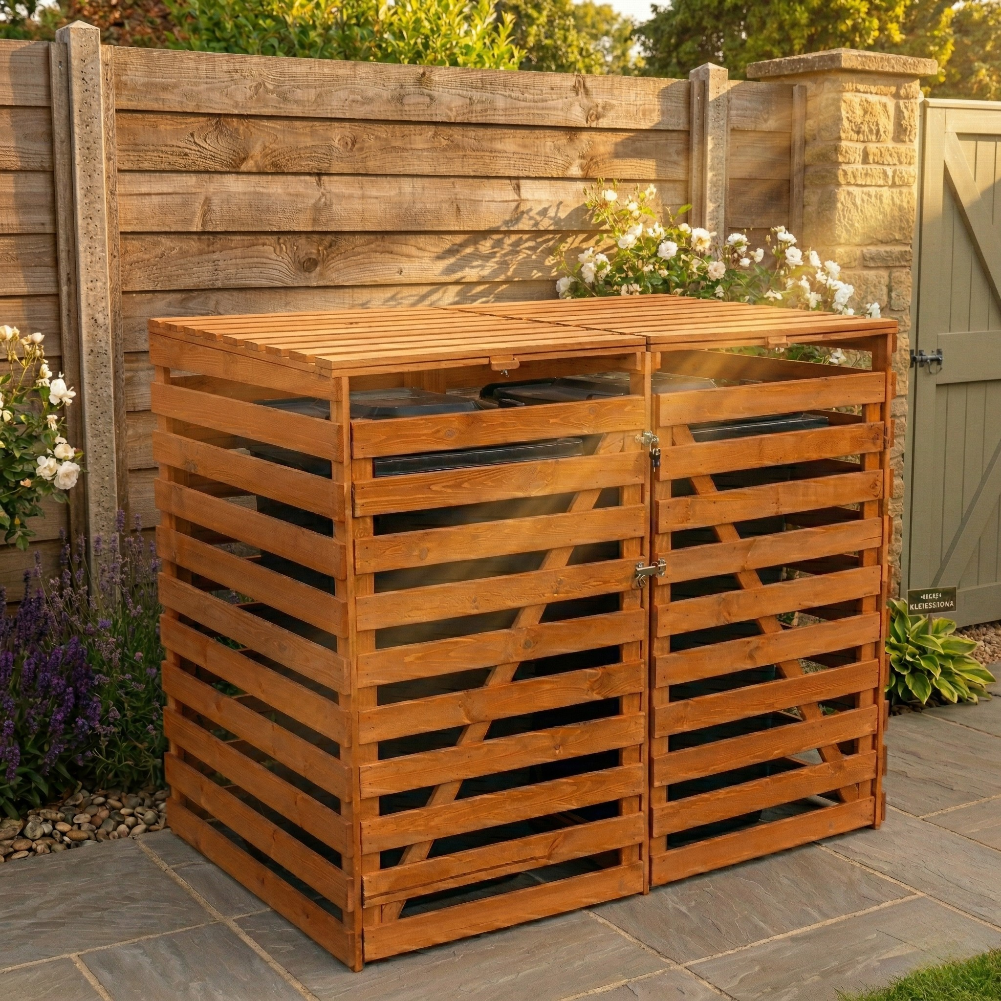 Stílusos módot keresel a csúnya kukák elrejtésére? Ez fából készült kuka fedele készült FSC® tanúsítvánnyal rendelkező fenyőfa ez egy olyan megoldás, amely összekapcsol esztétikát, tartósságot és környezettudatosságot.
